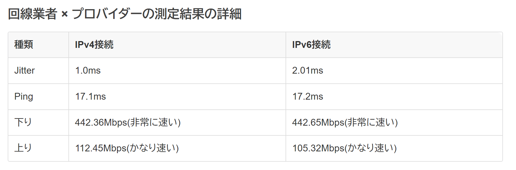 - スピードテスト結果:測定は以下のサイトで行って下さい。