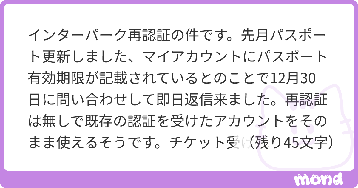 旅券番号が変わったけど、インターパークの本人認証(に登録済のパスポート)はまだ期限内のため、本人認証の更新ができない状態の「チケッティング」と「チケットの現場受領」について